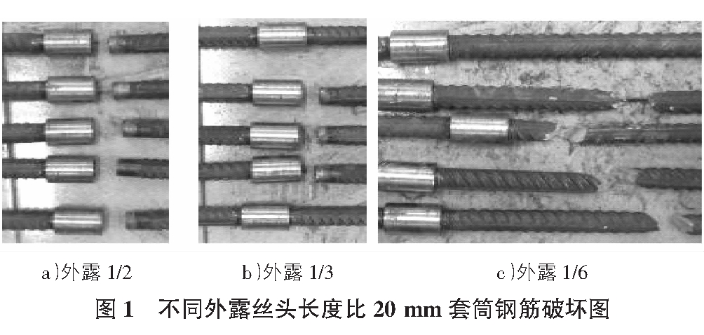 表1 不同外露絲頭長度時,直徑20 mm直螺紋套筒抗拉實驗結(jié)果及破壞形式